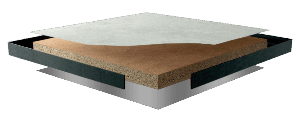 Es sin duda la parte más importante de la baldosa, realizado en partículas de madera de alta densidad, con Certificado FSC® Mix Credit.